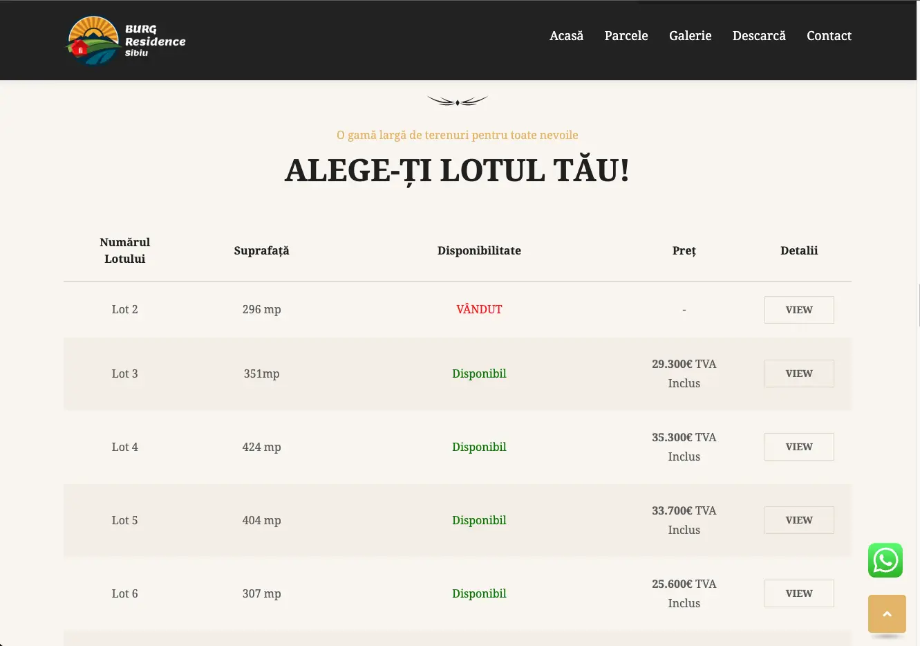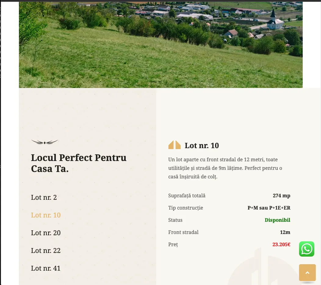 Pentru clientul nostru am construit de la 0 un întreg website unde sunt prezentate cele 98 de loturi de vânzare, cu secțiuni și pagini specifice pentru galerie, contact, parcele, prețuri, si o întreagă prezentare a proiectului. În prezent administrăm website-ul până la vânzarea tuturor parcelelor sau la cererea clientului.